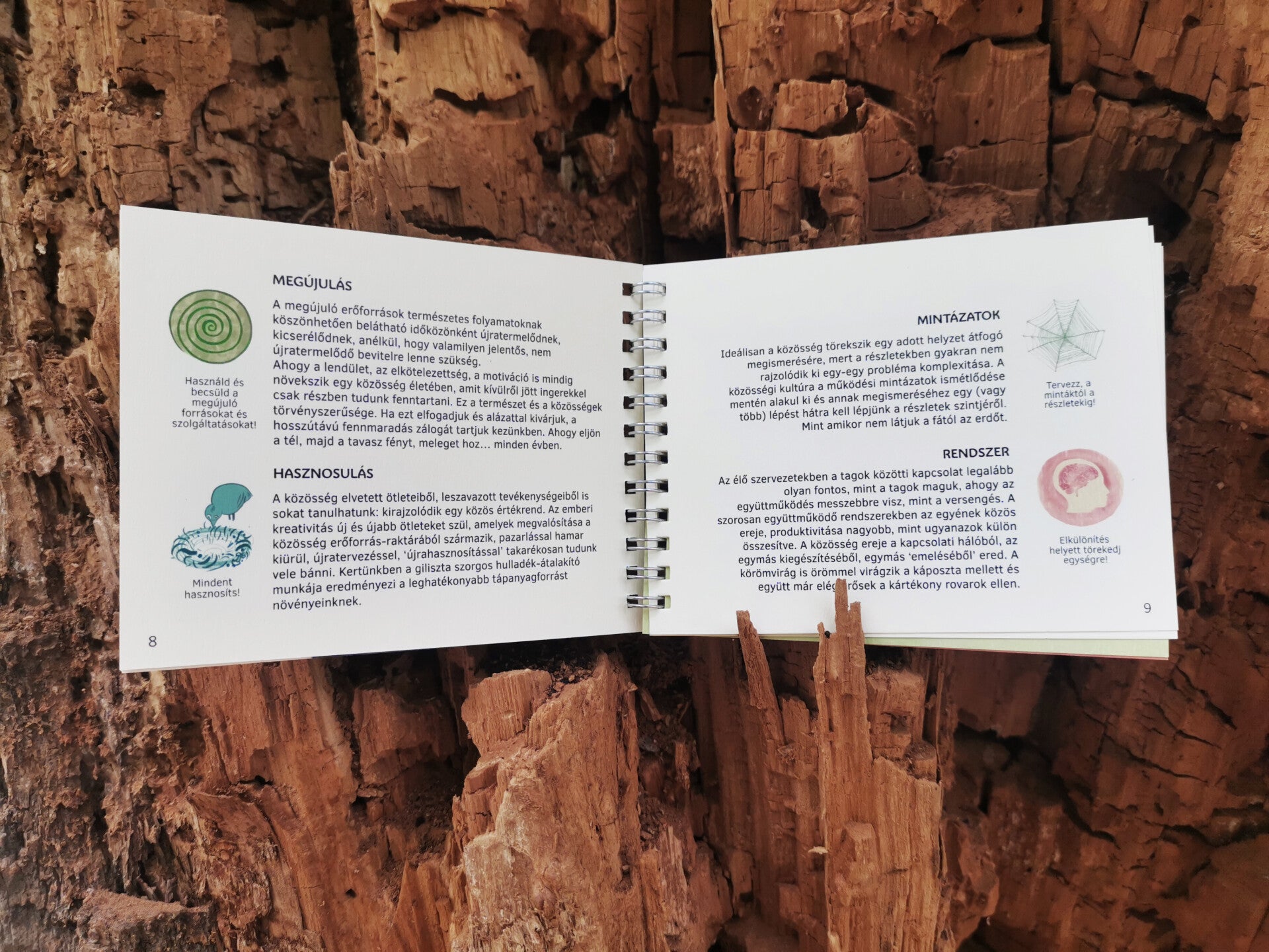 Tartozik hozzá egy 40 oldalas Útikalauz, melynek segítségével könnyedén tudod majd használni a kártyacsomagot. Tartalmazza a permakultúrás alapelvek közösségi értelmezését, a vezetői minőségeket, ezenkívül 5 olyan folyamat leírását, melyekkel azonnal elindulhattok a kártya jótékony hatásának megtapasztalása útján.
